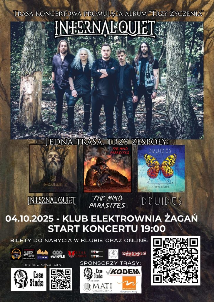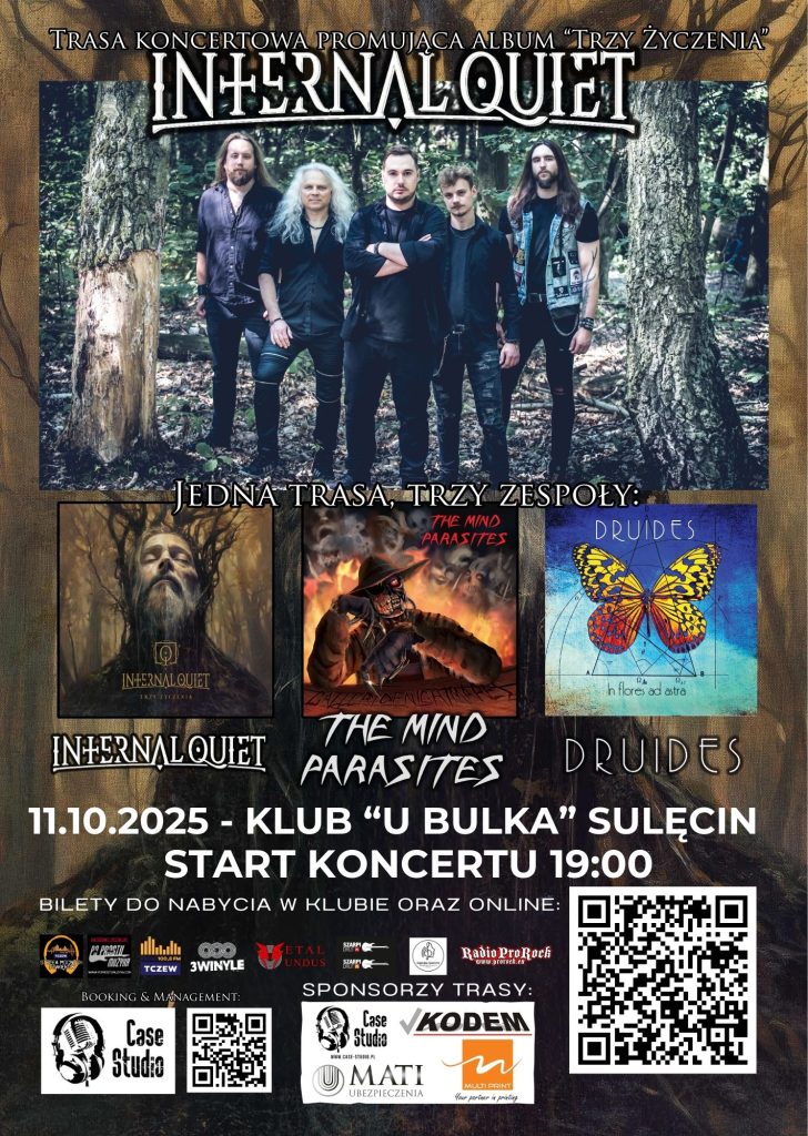 Oba zespoły – 𝗧𝗵𝗲 𝗠𝗶𝗻𝗱 𝗣𝗮𝗿𝗮𝘀𝗶𝘁𝗲𝘀 oraz 𝗗𝗿𝘂𝗶𝗱𝗲𝘀 – to interesujące, energetyczne formacje, które dopełnią koncerty Internal Quiet swoją oryginalnością i różnorodnym podejściem do muzyki rockowej i metalowej. Organizacja koncertów i produkcja trasy to zasługa Case Studio z Aleksandrowa Łódzkiego, znanego z profesjonalnego wsparcia wielu zespołów na rynku muzycznym.